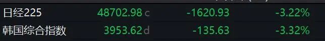在英伟达财报和关键美国就业报告即将公布的关键时刻前,市场风险情绪恶化,投资者撤离风险较高的市场领域,全球股市大跌。18日,日经225指数、韩国综合指数均跌超3%,港股恒指盘中跌超2%失守26000点。